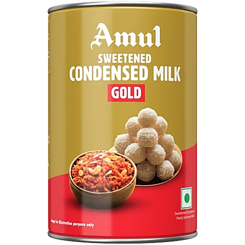 Amul Gold Sweetened Condensed Milk is a rich, creamy, and delicious dairy product made from pure milk and sugar. Ideal for preparing desserts, sweets, and beverages, it enhances flavor and texture. Perfect for making mithai, cakes, ice creams, and more.