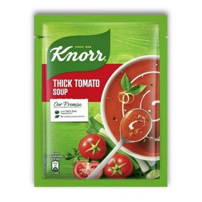 Knorr Thick Tomato Soup  is a rich, creamy soup made with ripe tomatoes and a perfect blend of seasonings. It offers a comforting, hearty flavor that’s both tangy and savory. Easy to prepare, simply add hot water, stir, and enjoy the thick, delicious taste of Knorr Thick Tomato Soup in minutes—ideal for a quick snack or light meal.