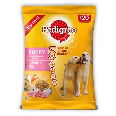 Pedigree Puppy Chicken & Milk (90g) is a complete and balanced dry food formulated to support the healthy growth of puppies. Enriched with high-quality protein from chicken and essential nutrients like calcium, phosphorus, and omega fatty acids, it promotes strong bones, healthy muscles, and a shiny coat. This meal also aids in digestive health and strengthens the immune system, making it an ideal choice for your growing pup.