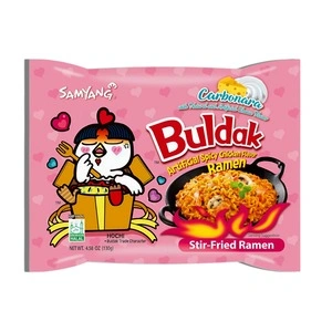 Samyang Buldak Carbonara Hot Chicken Flavored Instant Noodles blend the fiery heat of Buldak with a rich, creamy carbonara twist. Enjoy a perfect balance of spice and creaminess in every bite for a bold and satisfying experience.