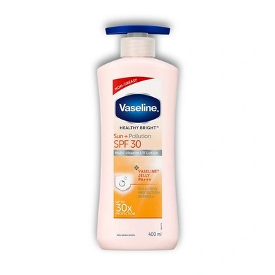 Vaseline Healthy Bright SPF 30 Multivitamin UV Body Lotion is a nourishing and protective moisturizer designed to brighten and shield skin from harmful UV rays. Infused with SPF 30, it helps prevent sun damage while deeply hydrating the skin. Enriched with multivitamins, it works to even out skin tone and restore a natural glow. The lightweight, non-greasy formula absorbs quickly, leaving skin soft, smooth, and radiant with daily use.