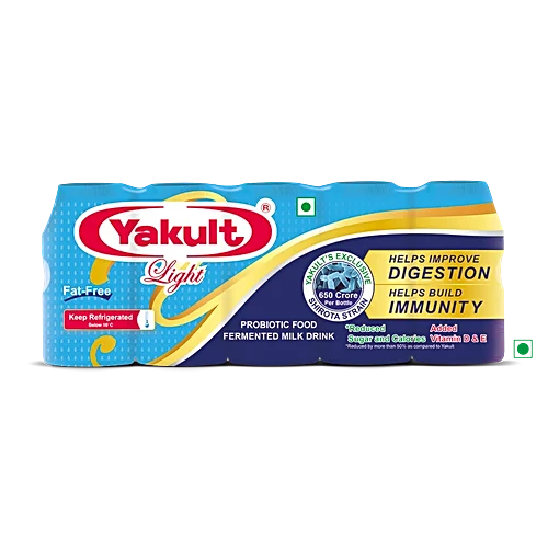 Yakult Probiotic Nutrition Drink – Light (65ml, Pack of 5) is a refreshing probiotic drink that supports digestive health with its special formulation of beneficial bacteria. This light version has fewer calories while still offering the same probiotic benefits. It’s a great way to improve gut health, boost immunity, and enjoy a tasty, low-calorie beverage.